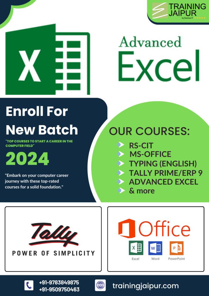 Book your free demo class today at the Training Jaipur Institute for Advanced Excel Course. And be a master in advanced Excel.